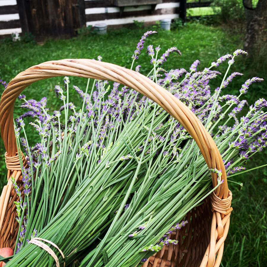 When the first blooms start opening in early summer, the flowers are hand harvested and hung to dry. Different varieties are suited to different uses - dried flowers, buds for sachets, culinary buds for use in baking, drinks or savory recipes and varieties best suited for distillation, providing essential oil and hydrosol.